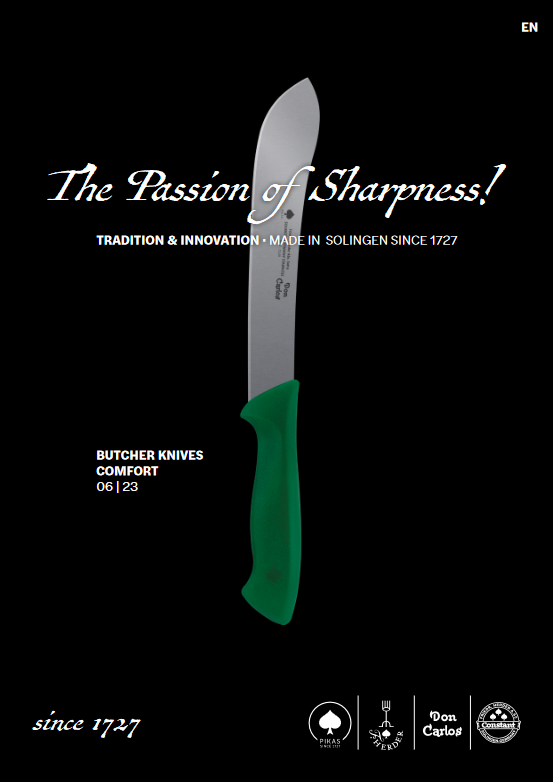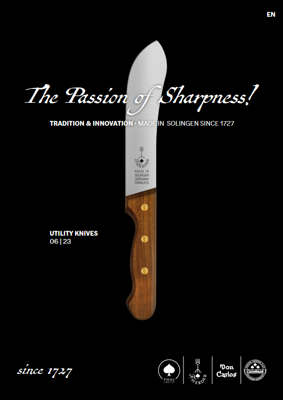 Welcome to our range! Discover a diverse selection of catalogues, tailor-made for different customer groups such as professional chefs, passionate hunters and dedicated farmers. Our catalogues offer high-quality tools that meet your individual needs.But that's not all - we also present a wide range of first-class knives for different applications. Whether you are looking for chef's knives, vegetable knives or craft knives, you will find what you are looking for with us. Experience outstanding performance and appealing design in one. Welcome to the world of excellent tools!