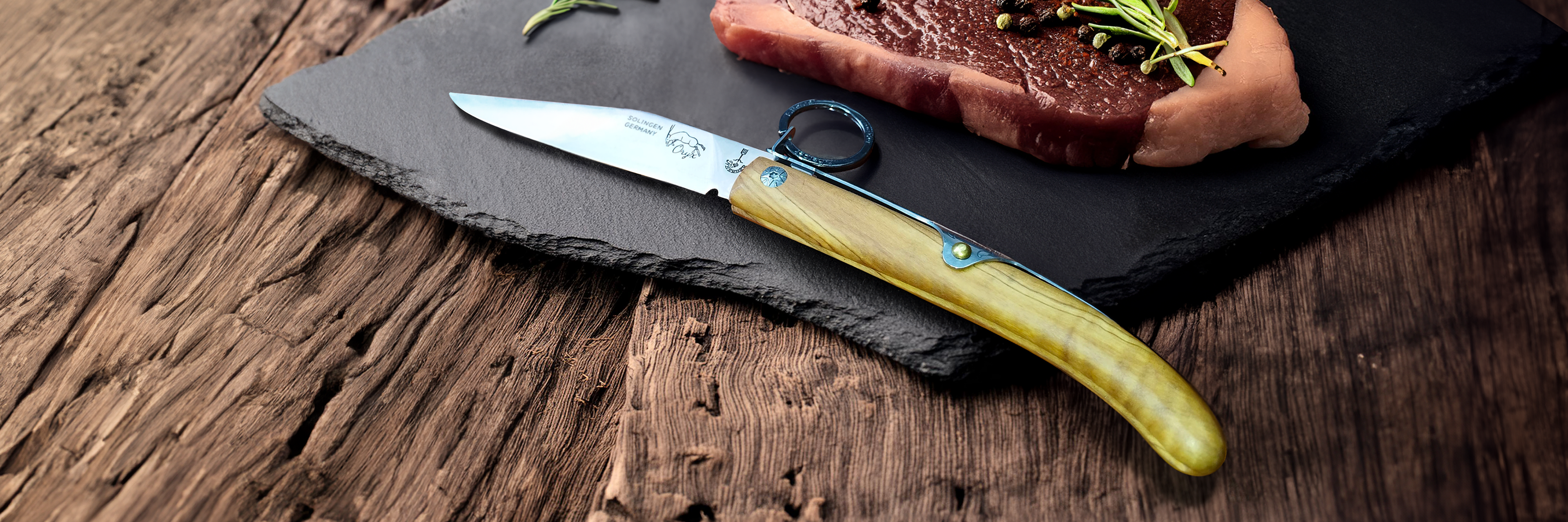 • Handmade in Solingen – Klinge und Mechanik aus unserer Manufaktur, Griff aus eigener Schreinerei